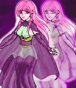 背後に幻影のようにしているのは、過去の(普通の)リノアン様です。瞳と額のペンダント、 衣装の色、胸元の布地…が変わった程度ですが、全体的に不気味な色気がある ように感じます。